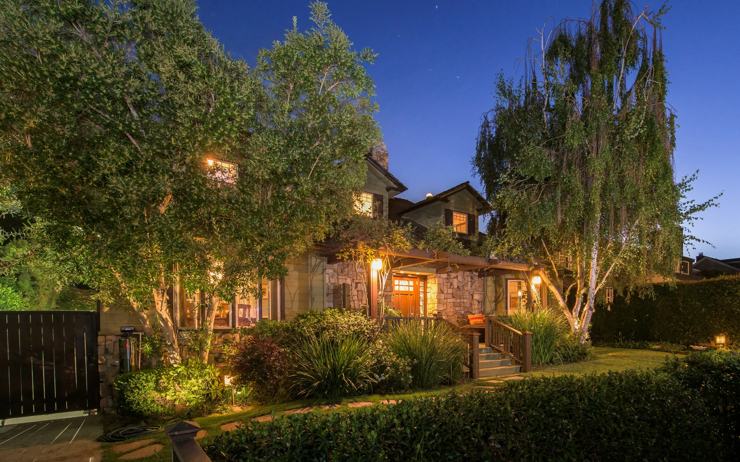 This Kenter Canyon craftsman is as warm and romantic as it is ideal for a family and entertaining. As you approach, walk under the hanging branches of white birch trees and onto a foot bridge that crosses over water streaming down from the mountains. A rose-covered pergola, swing, and water feature invite you up to the front porch. When you enter, you're greeted by a large sunlit foyer with dark beams and rich hardwood floors that carry on throughout. The cozy cottage feel belies the open floor plan that unfolds before you. With over 4,000 sqft, the 2-story home boasts 5 beds, 4 baths, 2 balconies and a heated back porch with remote controlled screen for movies. In addition to the main house, there are a yoga studio and office across the backyard, with hardwood floors and beams, and their own private courtyard. Ideally situated walking distance to Kenter Canyon, Crestwood, Tumbleweed, and shops on San Vicente. Get away from it all while remaining connected to a vibrant community.